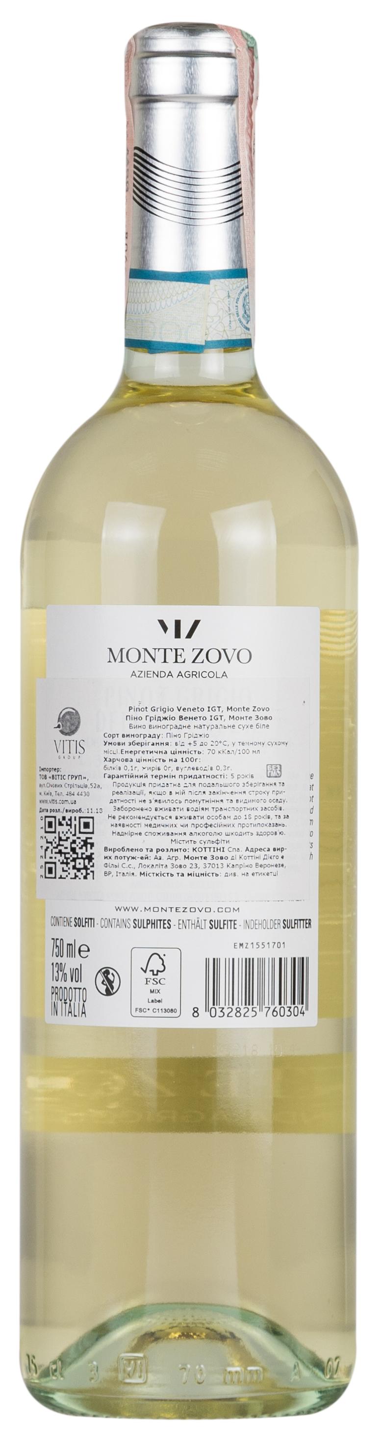 - Monte Zovo Pinot Grigio 2018 Set 6 bottles