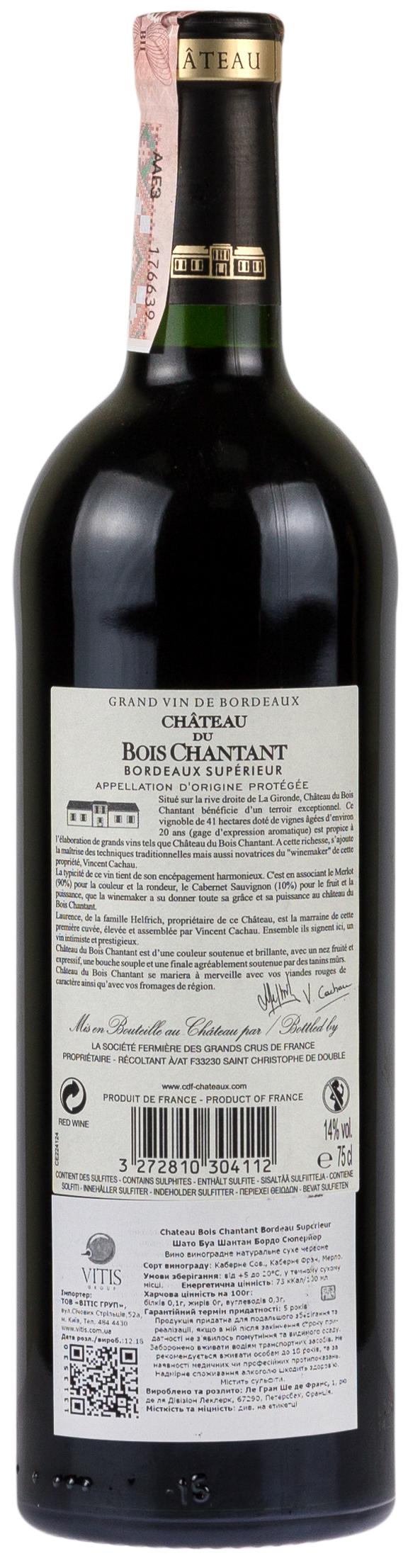 Шато дю Буа Шантан Бордо Супериор 2016 Сет 6 бутылок