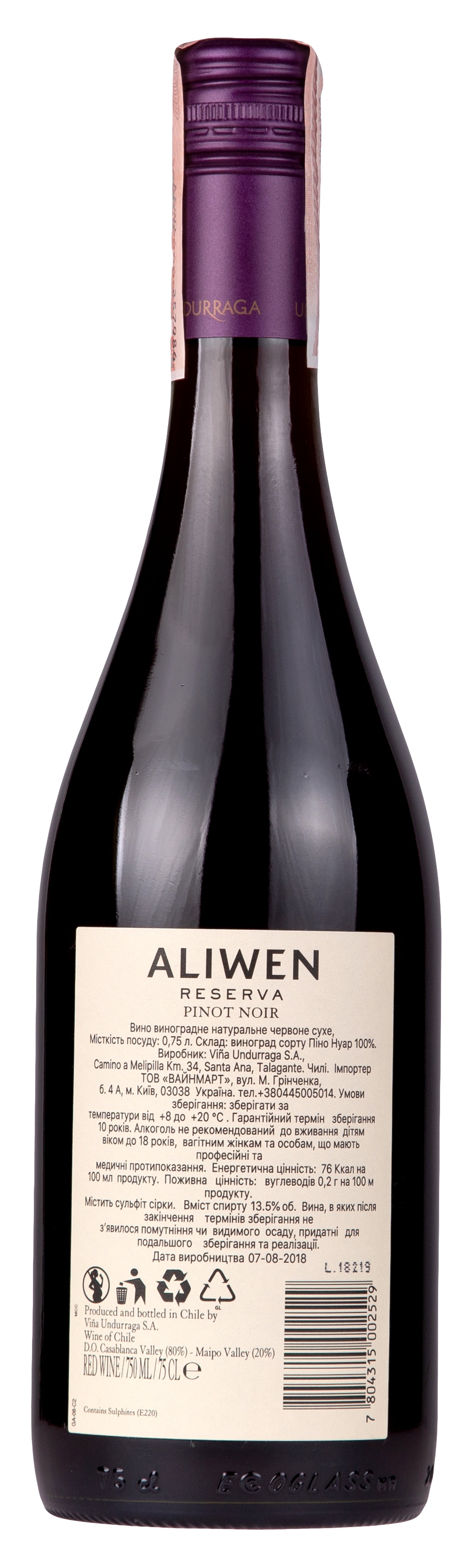 - Undurraga Aliwen Pinot Noir Reserva 2017 Set 6 bottles
