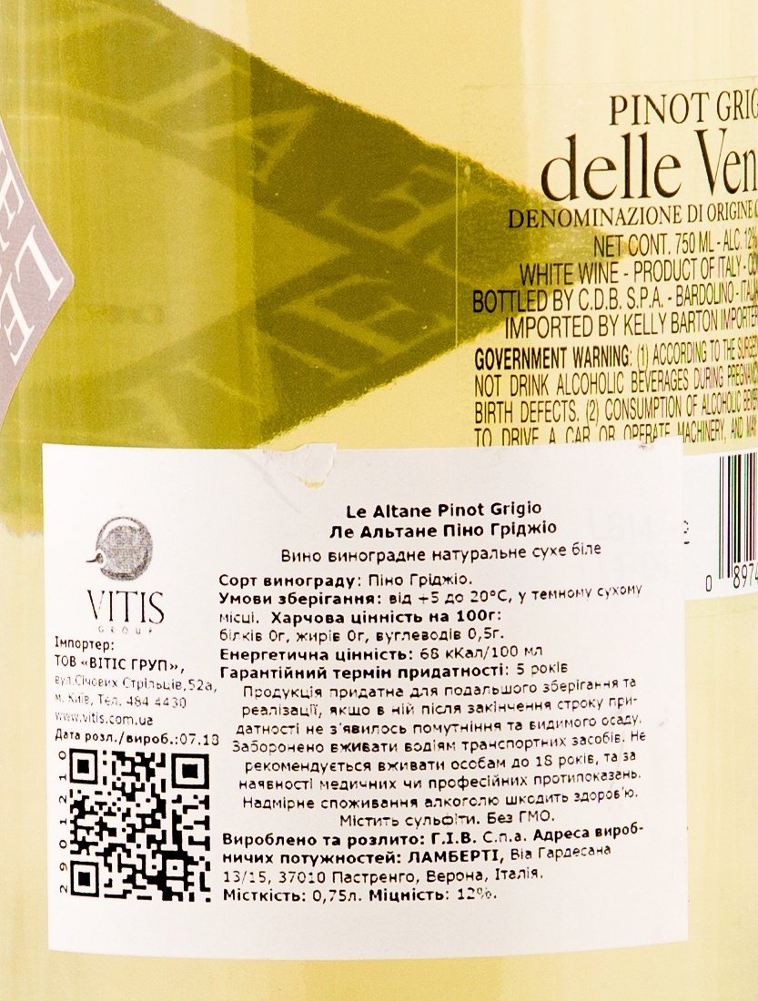 Ле Альтане Пино Гриджио 2018 Сет 6 Бутылок